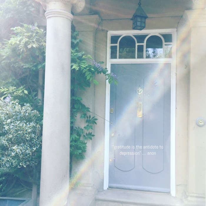 I read a while back and scribbled on my mirror notes, that gratitude is the antidote to depression. And I am grateful that that has rung true for me. I am grateful for the act of making it a daily, sometimes hourly, even instinctive practice for any moments or dips, redirecting me back to positivity.