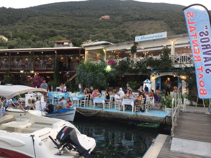 My morning, pre breakfast stretching and pilates, with my little sidekick on the deck and a swim ashore to raise my heart rate and wake me up… sleeping on a boat is intermittent with the splooshing and slapping of the waves against the hull by my head, the jangling of the ropes and boom…the early risers and callers, washing the decks, footling with lockers and 'wotnots'… and Tinkler's off the side.