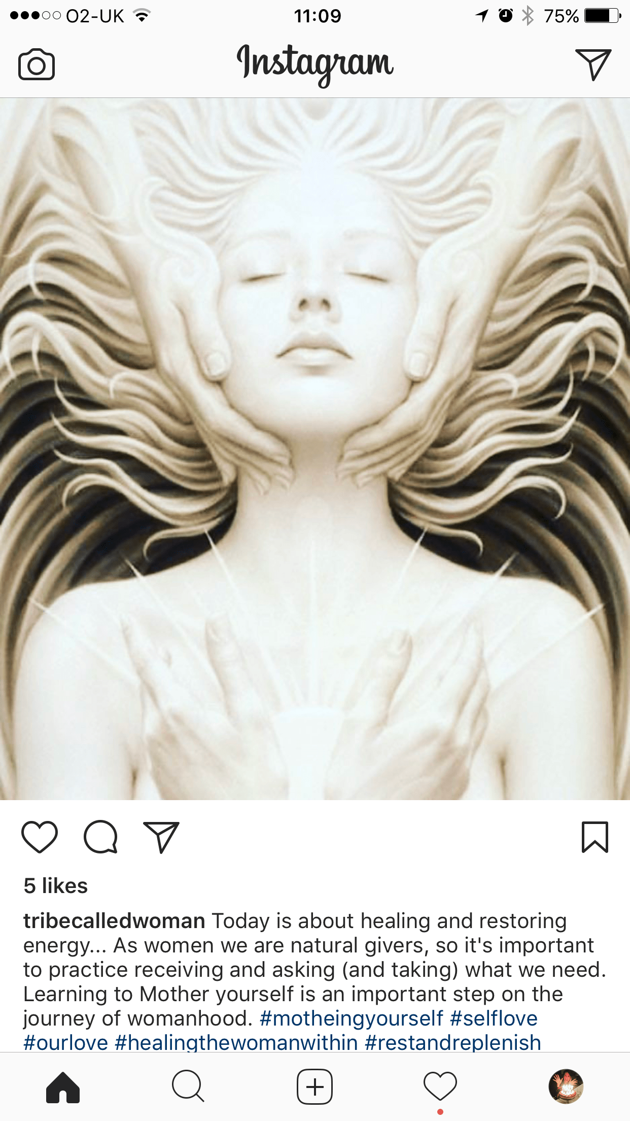 Another very clear message, the first one I saw as I opened instagram, gave me permission to mother myself, rather than fly around supermarkets and DIY shops, running errands. It’s been a while. A while since I have snuck back under the covers during the day…. A beautiful meditation lulling me up in to a levitating place.. Thank you Karen – I needed that.